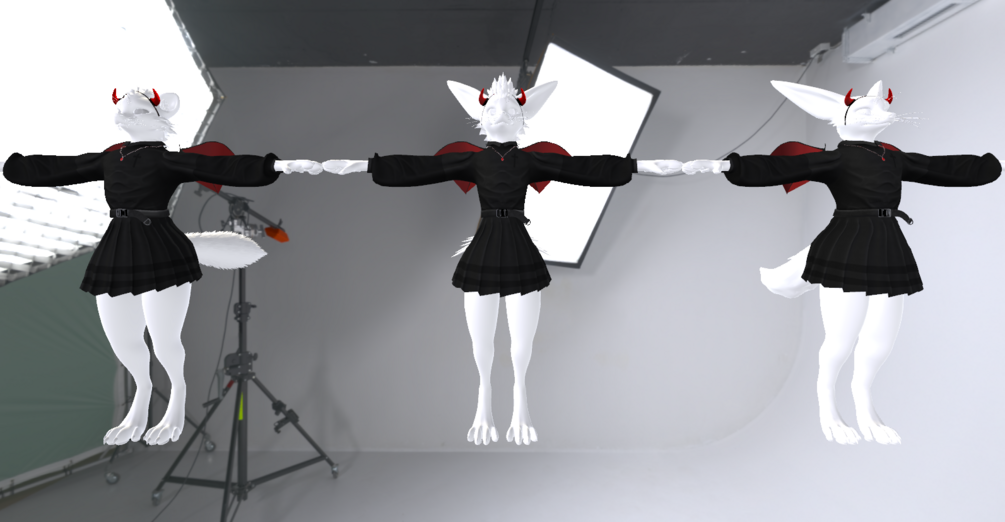 It has been refitted and reworked by Sheltr, including weight painting, blendshapes, re-rigging, fitting, and testing.